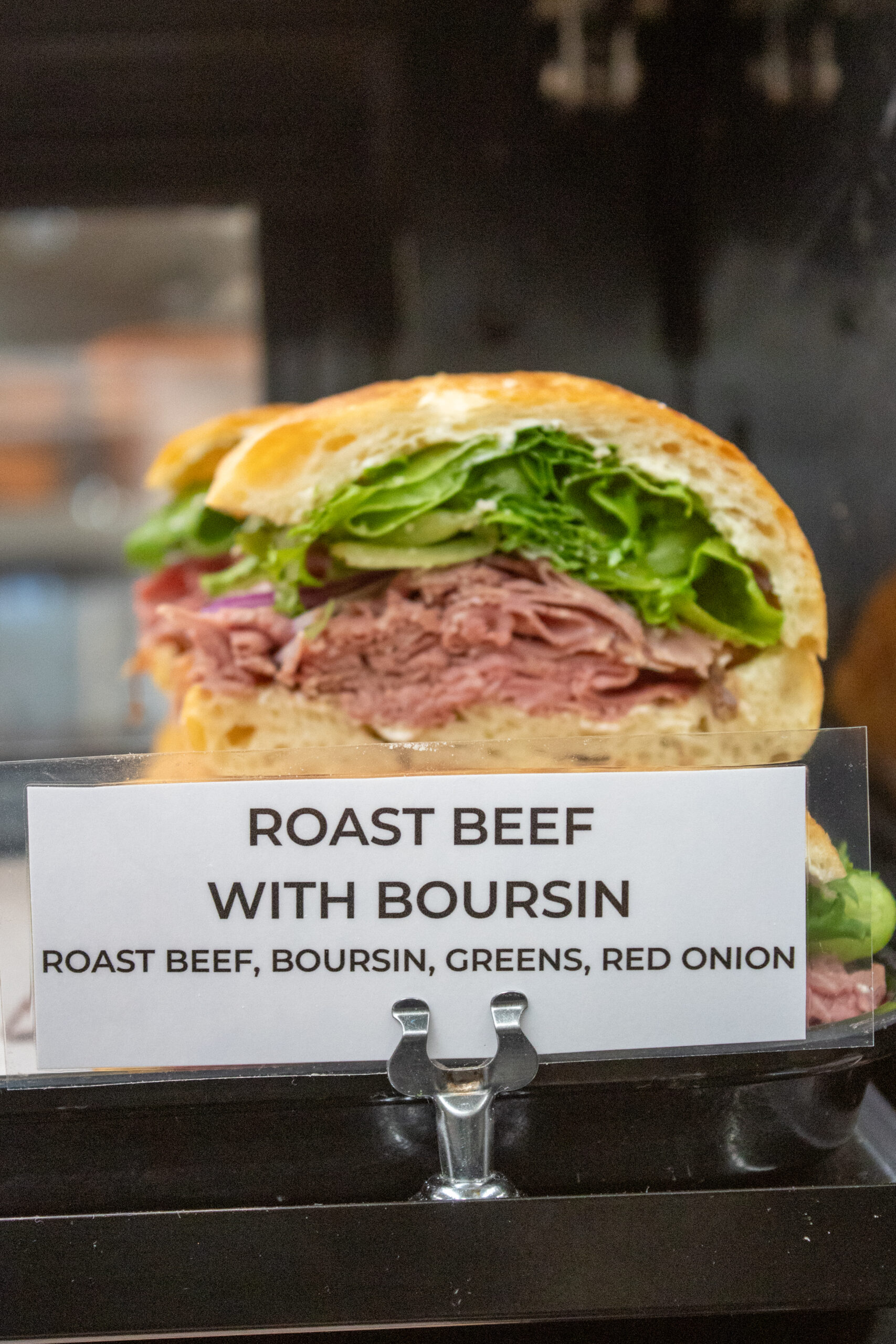 Shaved Roast Beef (g) – Boursin spread, red onion, & little leaf, served on ciabatta 17