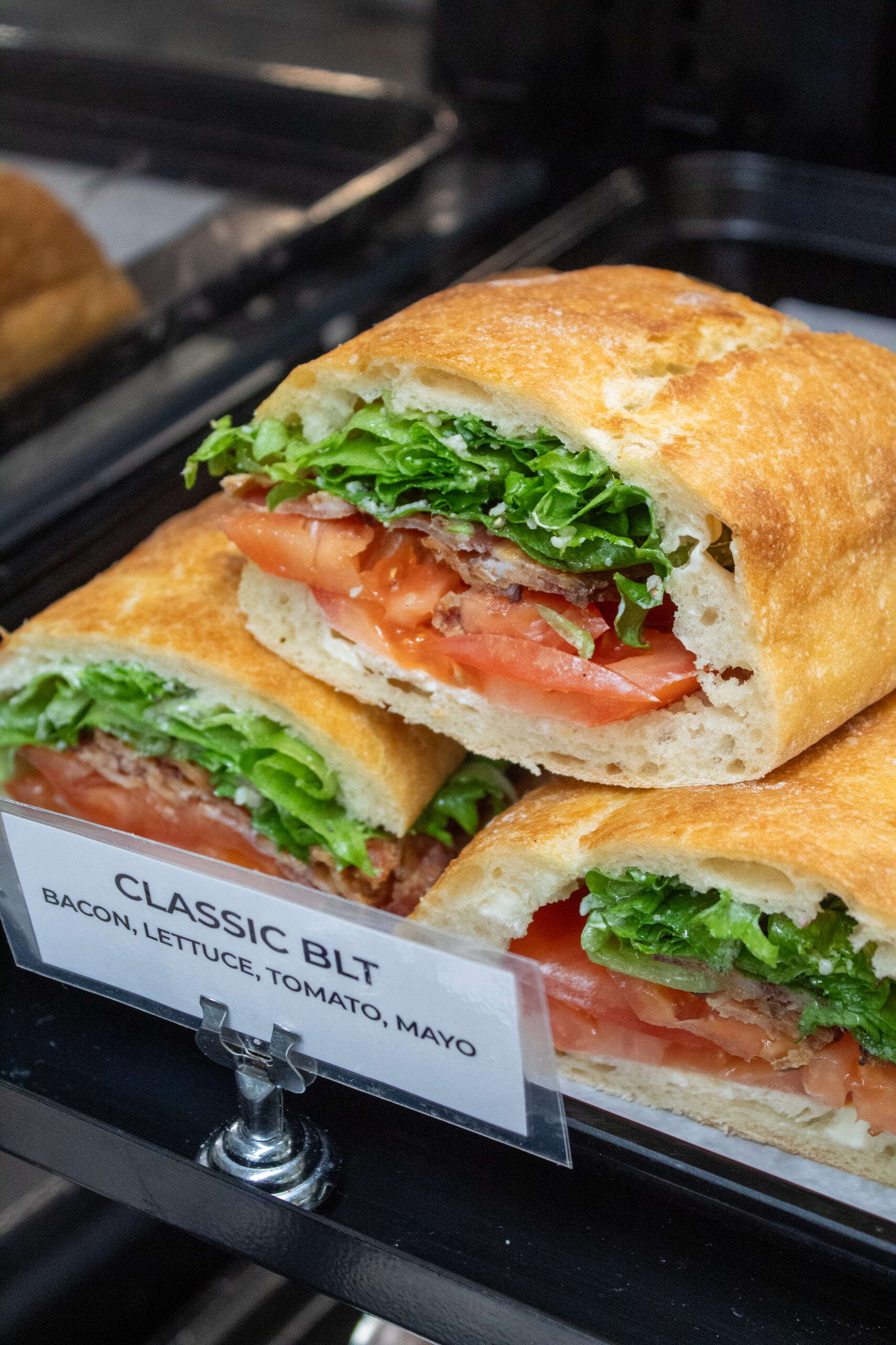 Classic BLT – bacon, heirloom tomatoes & little leaf,  served on ciabatta 17